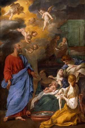 Natividad de San Juan Bautista. (s. I d.J.C.) Con el de la Virgen y el de Jesús, el nacimiento de San Juan Bautista es de los tres únicos que celebra la Iglesia: el de María por haber sido creada inmaculada, y el de San Juan por haber sido santificado en el seno de su madre Santa Isabel, cuando ésta recibió la visita de María, su prima. Toda su vida fue digna de tales comienzos. "Entre los nacidos de mujer, nadie hay mayor que Juan el Bautista", dijo una vez Jesús. Juan tuvo la misión de preparar el camino al Salvador, anunciando la llegada inminente del Mesías. Fue así el último de los profetas del Antiguo Testamento, y la Iglesia lo considera el más grande de los santos después de la Virgen María. Contemporáneo de Jesús, es considerado por la tradición cristiana como el precursor del Mesías. El cariz de su predicación inquietó a las autoridades. Herodes Antipas, por su parte, se vio afectado en su vida privada por las exigencias morales del profeta; temiendo una revuelta popular, mandó detenerlo. Juan fue decapitado en la cárcel el año 28 d.J.C.