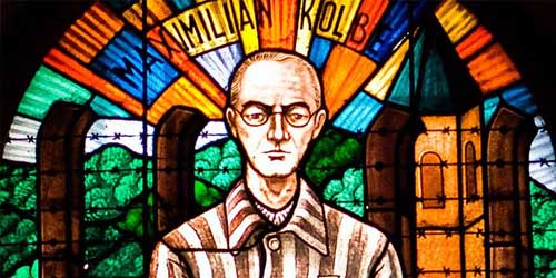 San Maximiliano María Kolbe nació en Polonia el 8 de enero de 1894 en la ciudad de Zdunska Wola (Pabiance), que en ese entonces se hallaba ocupada por Rusia. Fue bautizado con el nombre de Raimundo en la iglesia parroquial. A los 13 años ingresó en el Seminario de los padres franciscanos en la ciudad polaca de Lvov, la cual a su vez estaba ocupada por Austria, y estando en el seminario adoptó el nombre de Maximiliano. Finaliza sus estudios en Roma y en 1918 es ordenado sacerdote.
